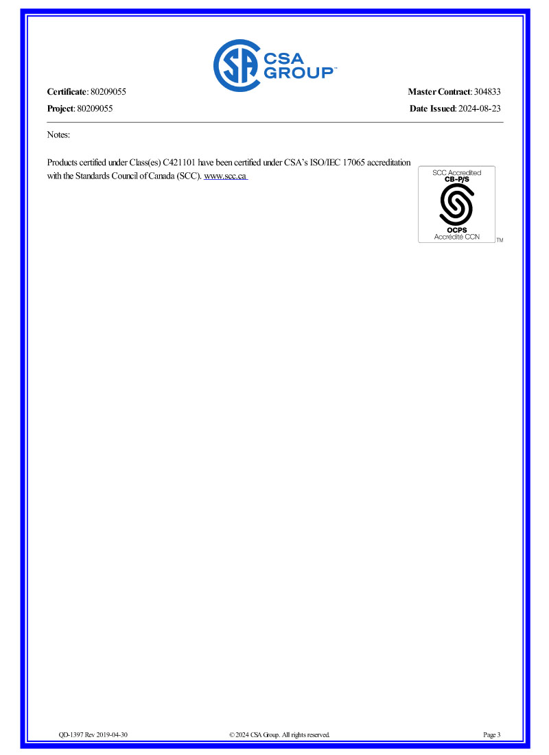 電機CSA認證證書